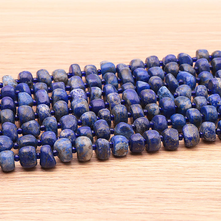 Fil de perles pierres roulées 04 x 10mm lapis lazuli AB