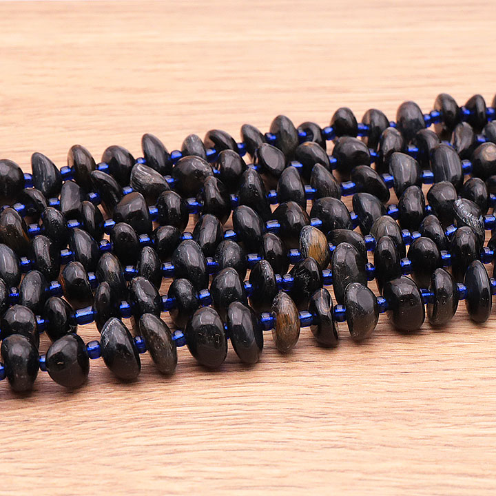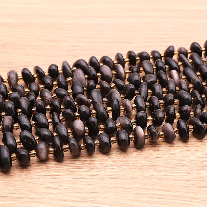 Fil de perles pierres roulées 04 x 10mm obsidienne argentée AA