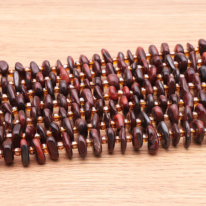 Fil de perles pierres roulées 04 x 10mm jaspe rouge A