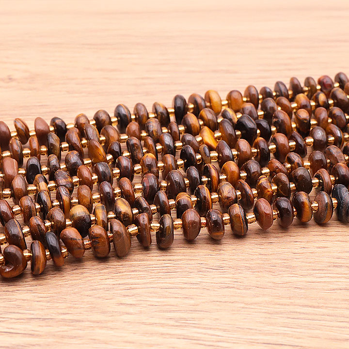 Fil de perles pierres roulées 04 x 10mm œil de tigre AA