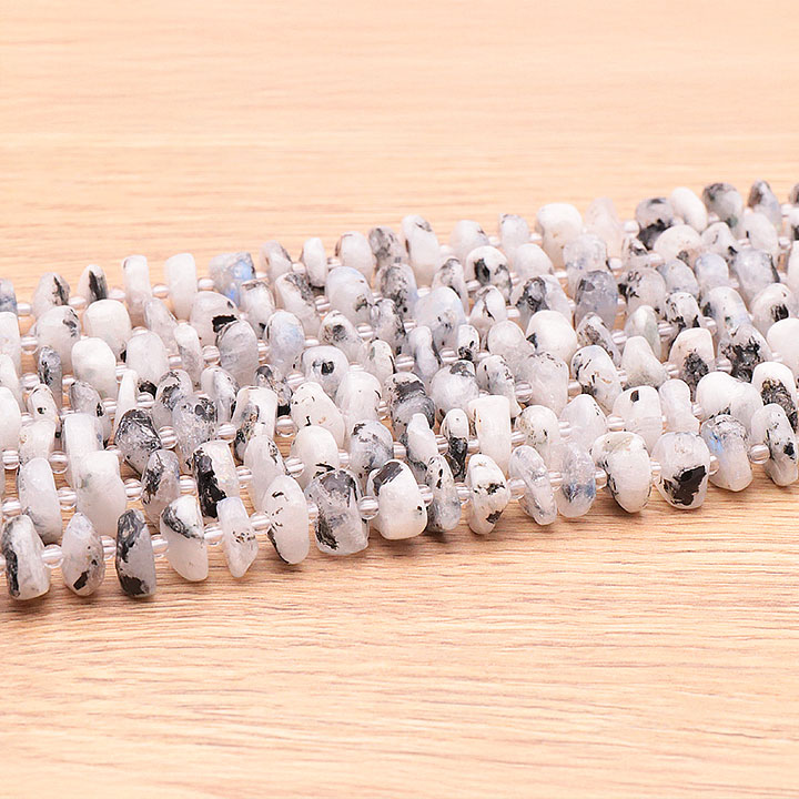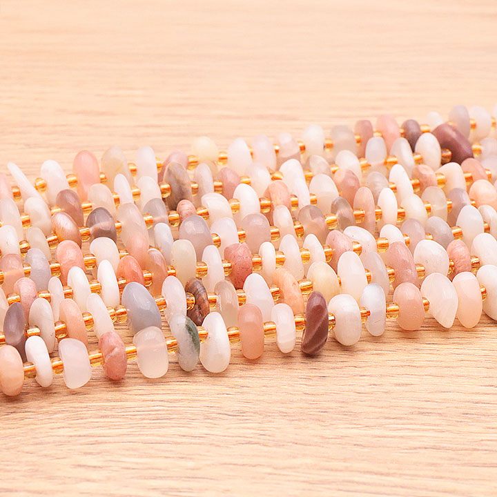 Fil de perles pierres roulées 04 x 10mm pierre de lune multicolore AA