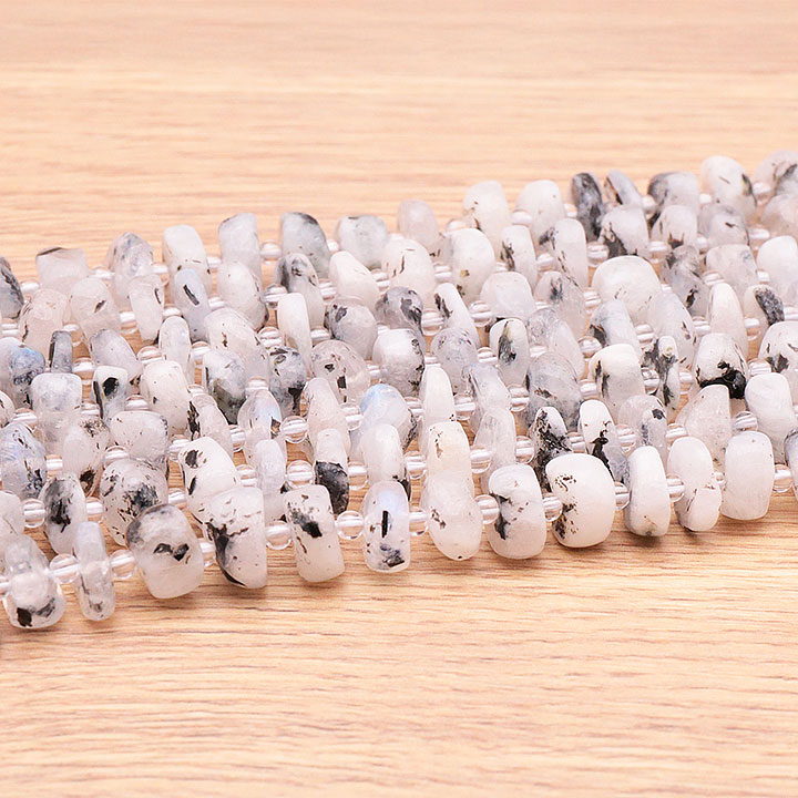 Fil de perles pierres roulées 04 x 10mm pierre de lune noire A