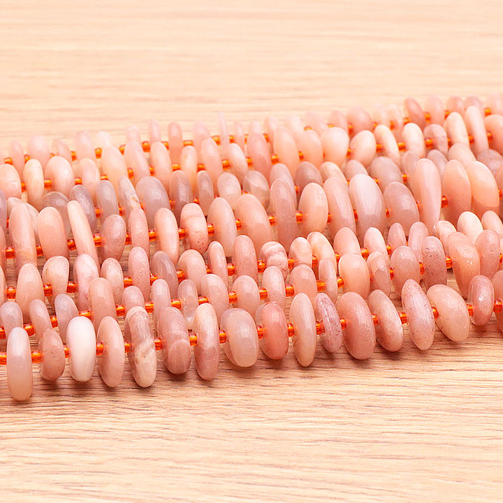 Fil de perles pierres roulées 04 x 10mm pierre de lune rose AA