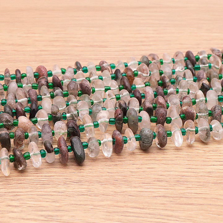 Fil de perles pierres roulées 04 x 10mm quartz chlorite A