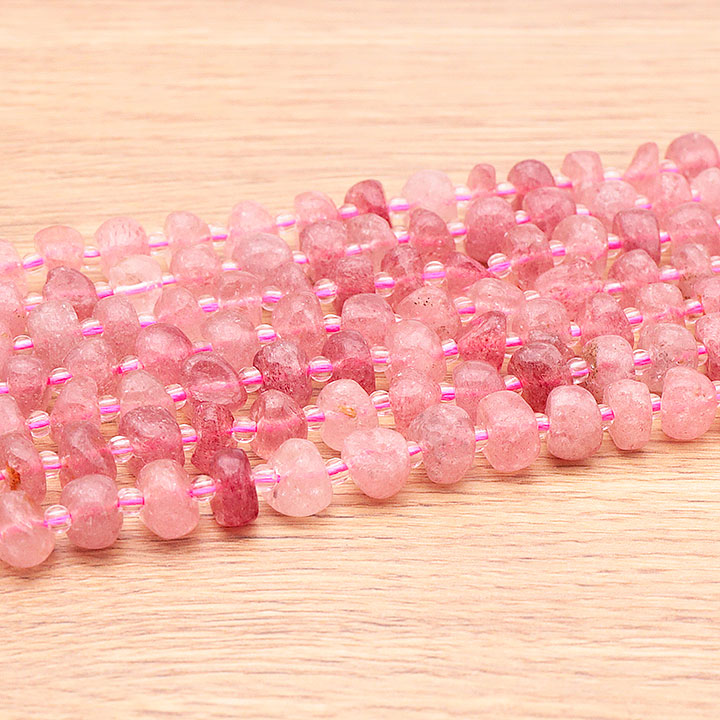 Fil de perles pierres roulées 04 x 10mm quartz fraise (hématoïde) AA