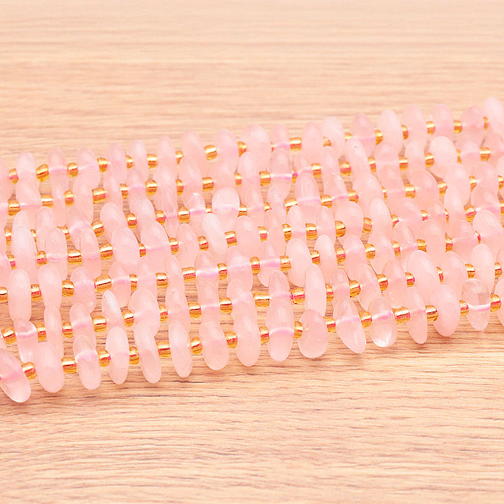 Fil de perles pierres roulées 04 x 10mm quartz rose Afrique du Sud AA