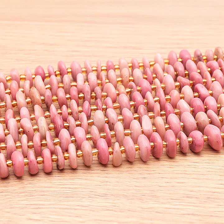 Fil de perles pierres roulées 04 x 10mm rhodonite Australie AA