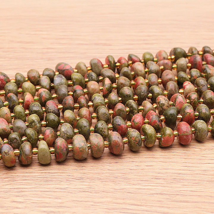 Fil de perles pierres roulées 04 x 10mm unakite A