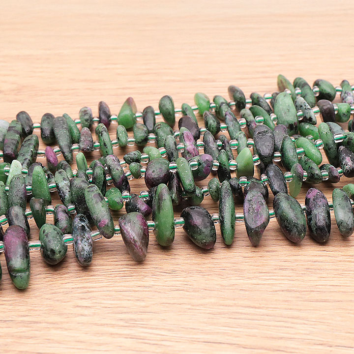 Fil de perles pierres roulées 04 x 20mm rubis zoïsite A