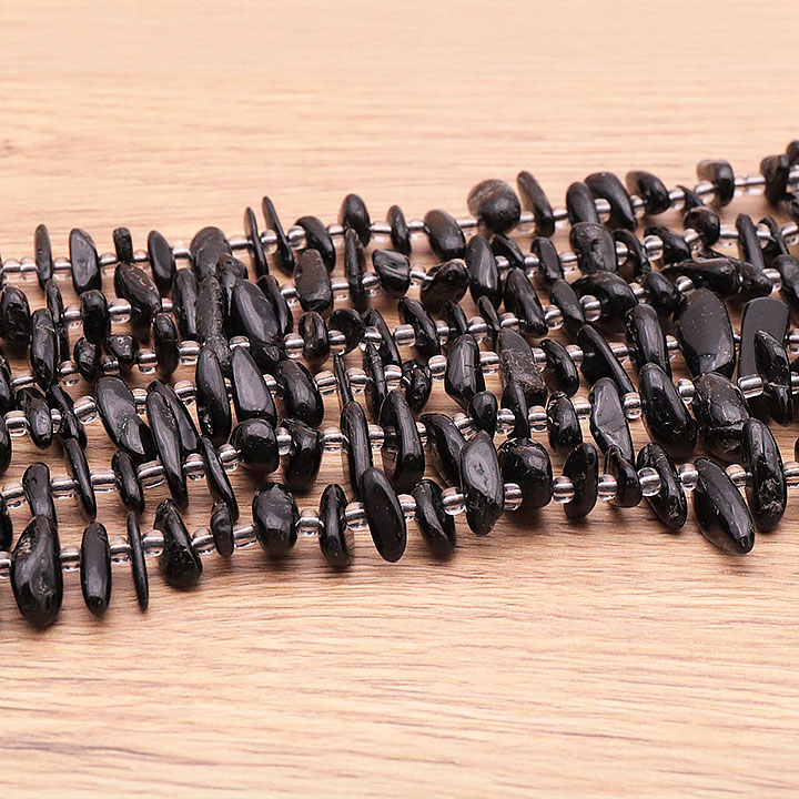 Fil de perles pierres roulées 04 x 20mm tourmaline noire A
