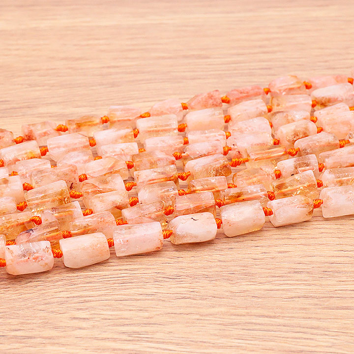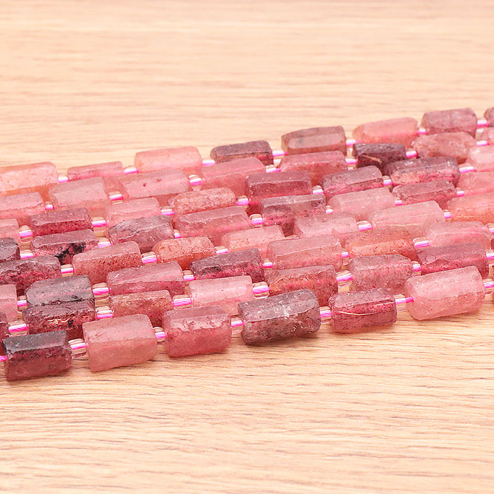 Fil de perles tubes 08 x 12mm quartz fraise (hématoïde) AA