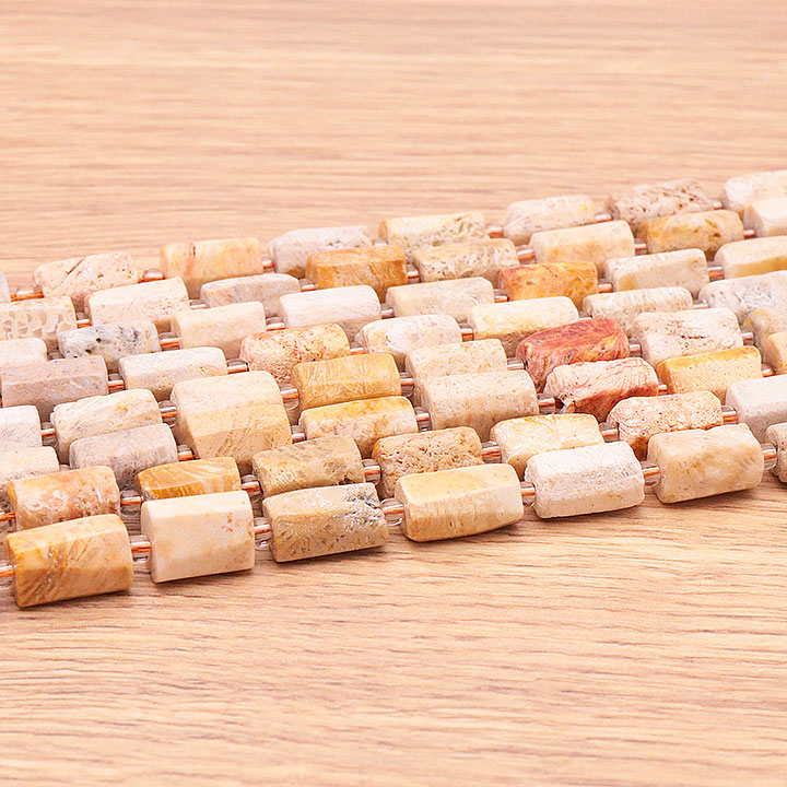 Fil de perles tubes 08 x 12mm jaspe mokaïte A