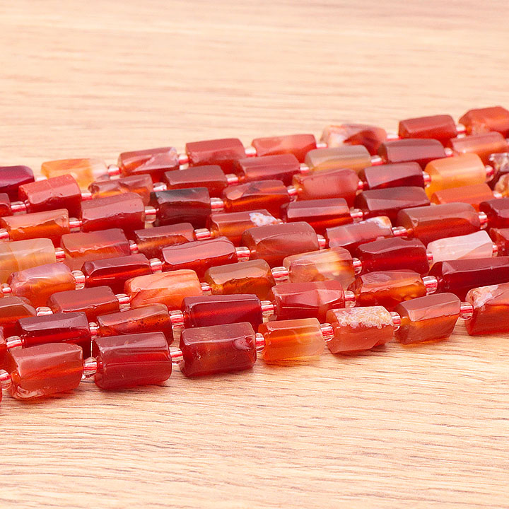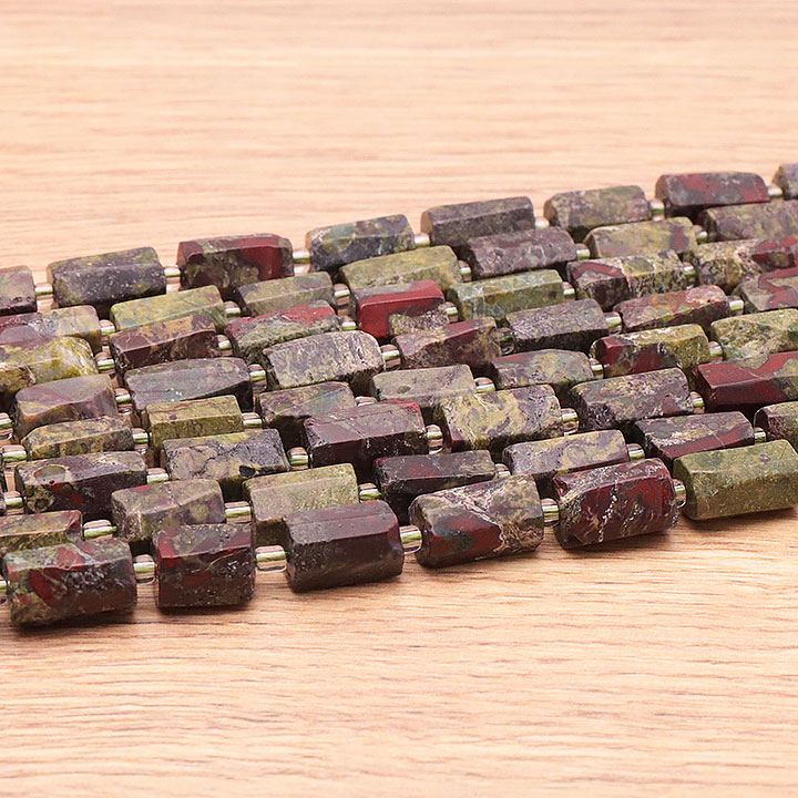 Fil de perles tubes 08 x 12mm jaspe sang de dragon A