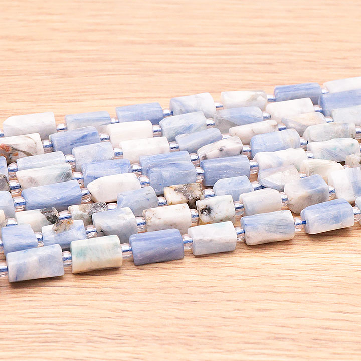 Fil de perles tubes 08 x 12mm cyanite bleue AB