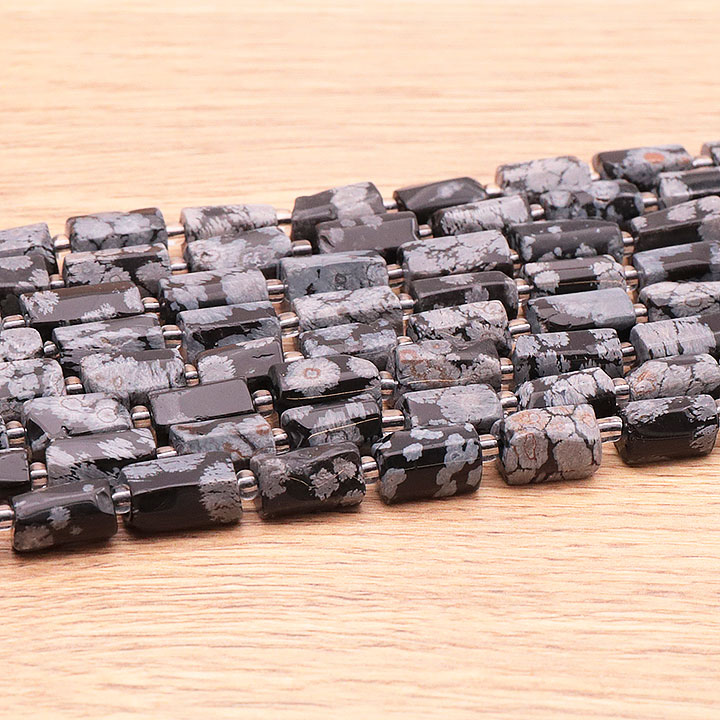Fil de perles tubes 08 x 12mm obsidienne flocon de neige A