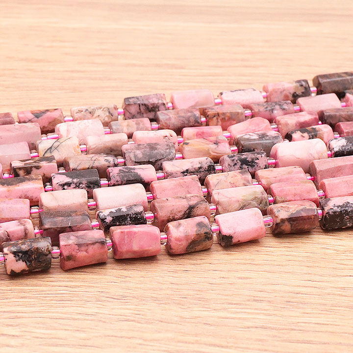 Fil de perles tubes 08 x 12mm rhodonite Madagascar A