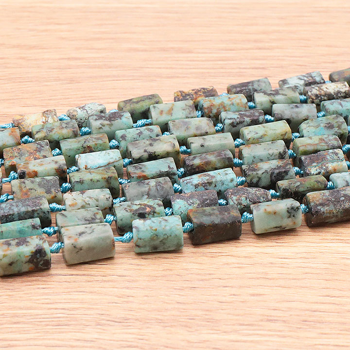 Fil de perles tubes 08 x 12mm turquoise d'Afrique A