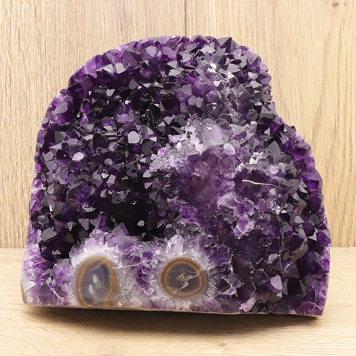 Géodes d'améthyste : pièces numérotées vendues par lot.