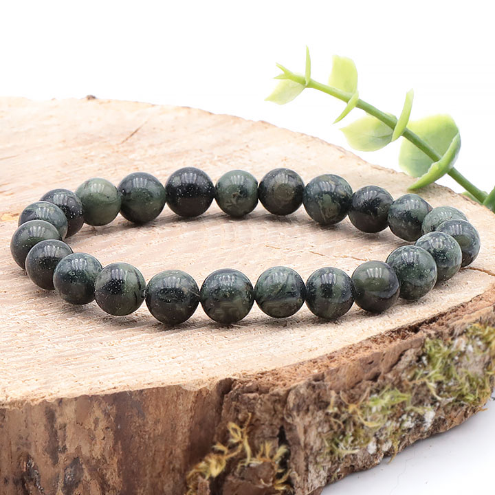 Bracelets et pendentifs en jaspe kambaba. Pierres roulées, œufs et sphères de jaspe kambaba.