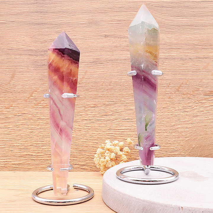 Pointe cristaux fluorine rainbow avec socle AA 200 à 230g (1 pièce)