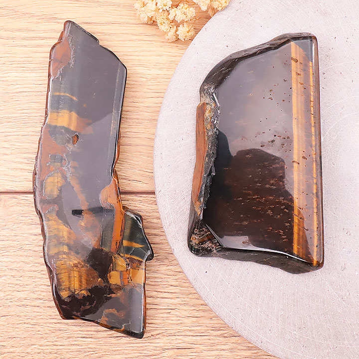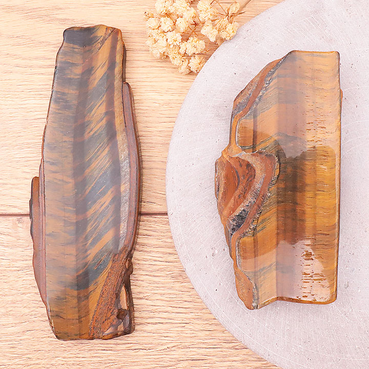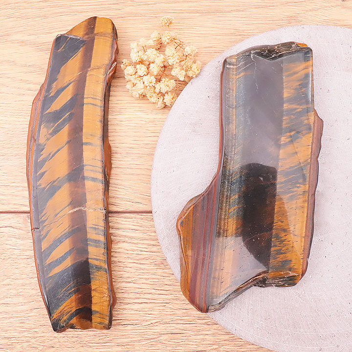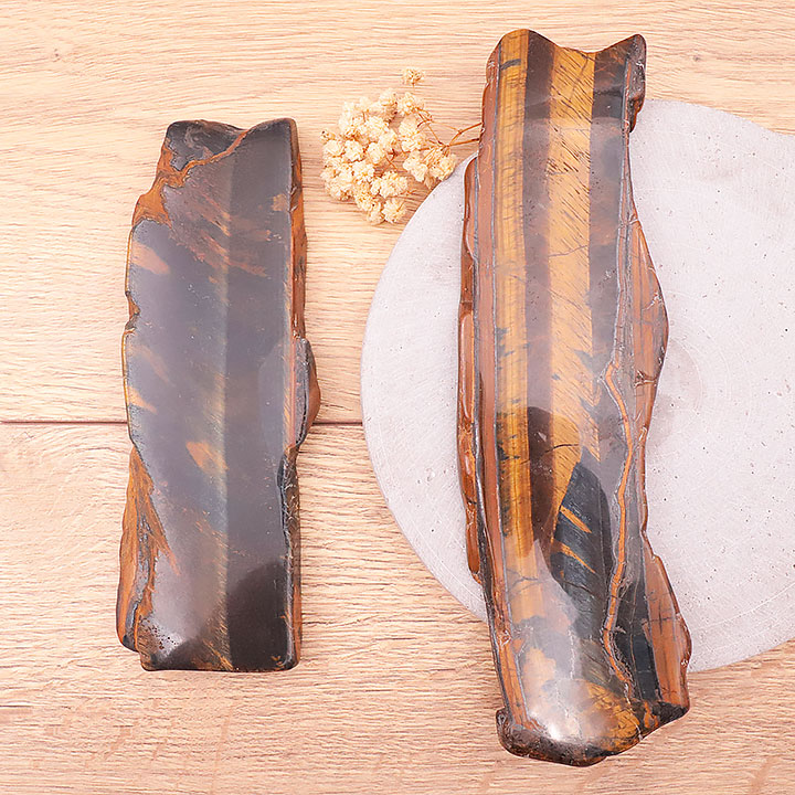 Tranche polie oeil de tigre avec oeil de faucon AA 300 à 350g (1 pièce)