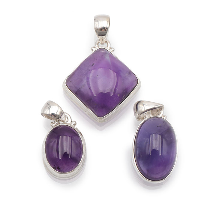 Pendentif argent 925 améthyste AAA N°3356 (3 pièces) 24,47g