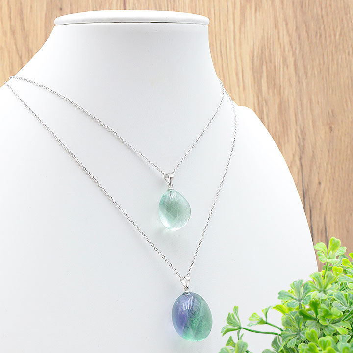 Pendentif pierre roulée fluorine multicolore claire AA 15 à 30mm (lot 3 pièces)