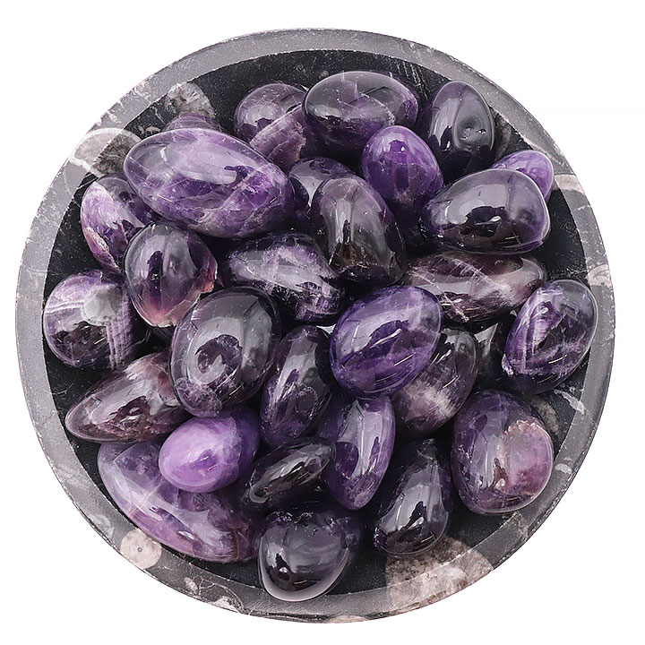 Pierre roulée améthyste rubanée Zambie AB 30 a 40mm (lot 500g)