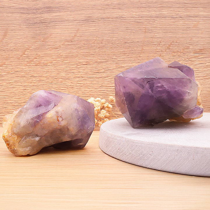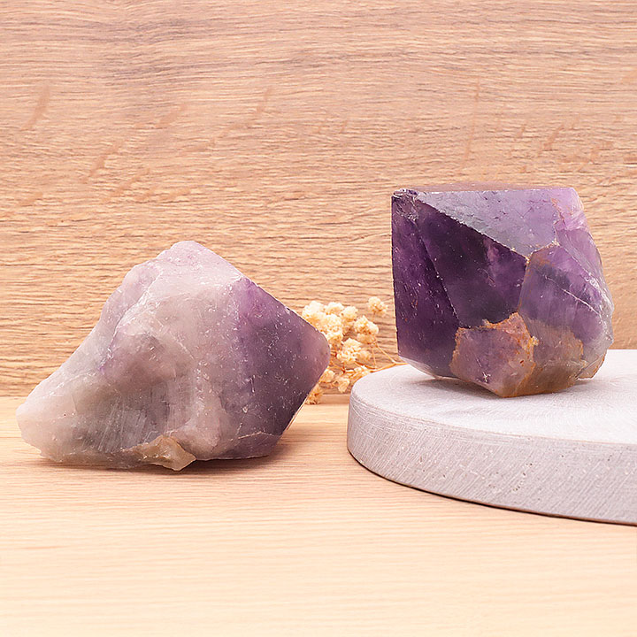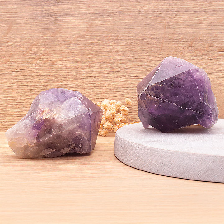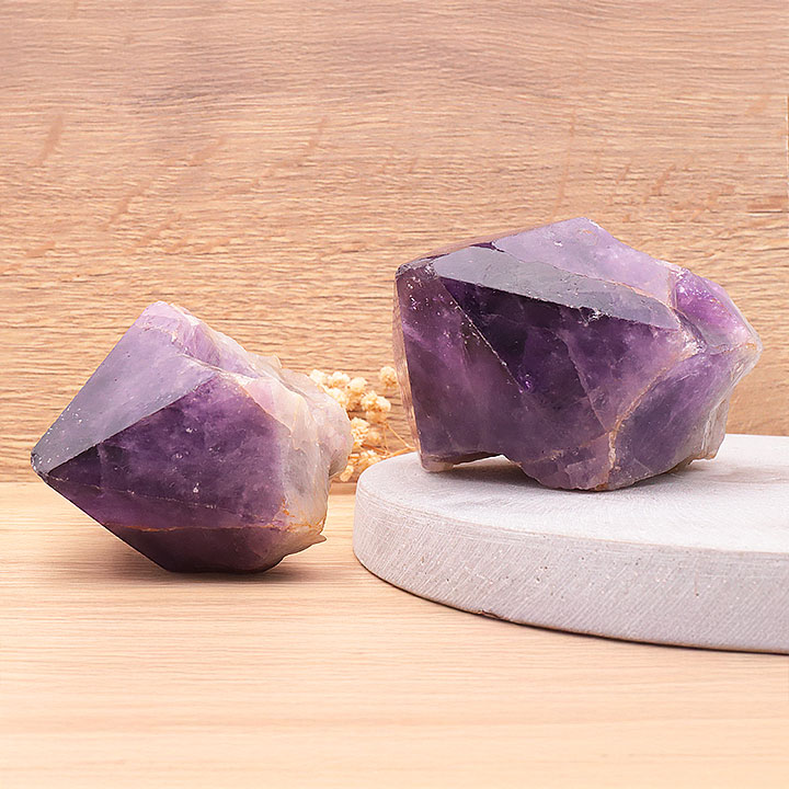 Pointe brute améthyste AA 50 à 100g (lot 2 pièces)