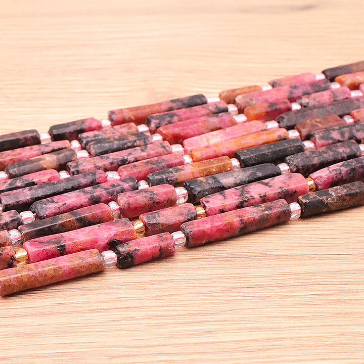 Bracelets et pendentifs en rhodonite. Pierres Donuts, galets et pierres roulées de rhodonite. Figurines et sphères en rhodonite.