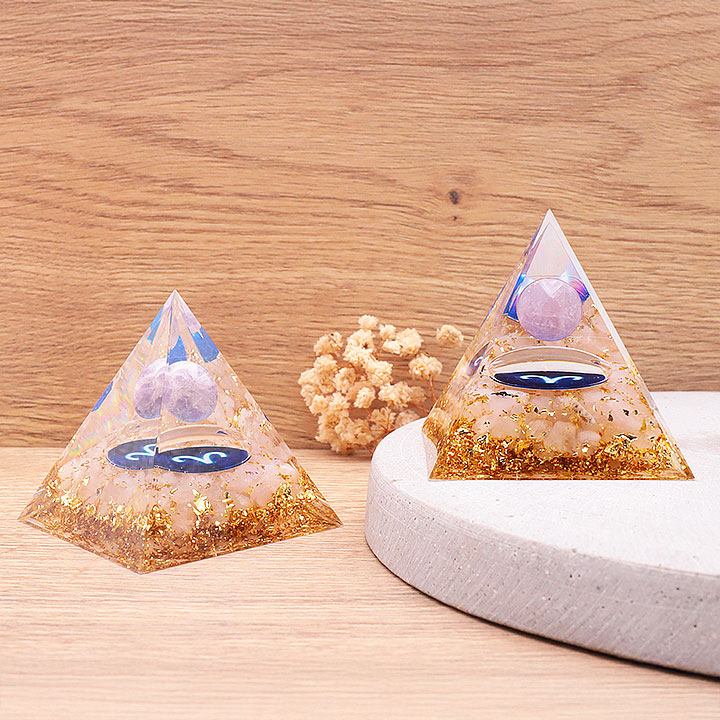 Orgonite 60mm astrologie bélier améthyste / quartz rose A (1 pièce)