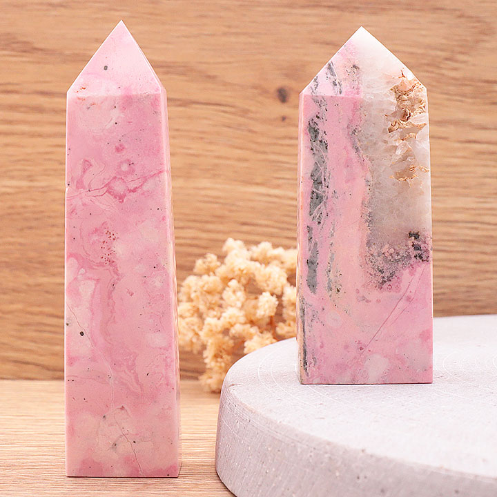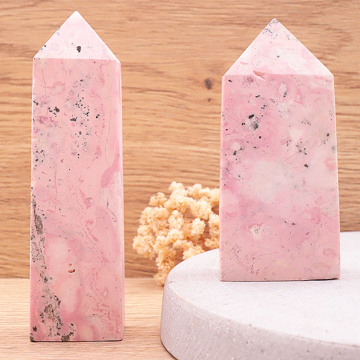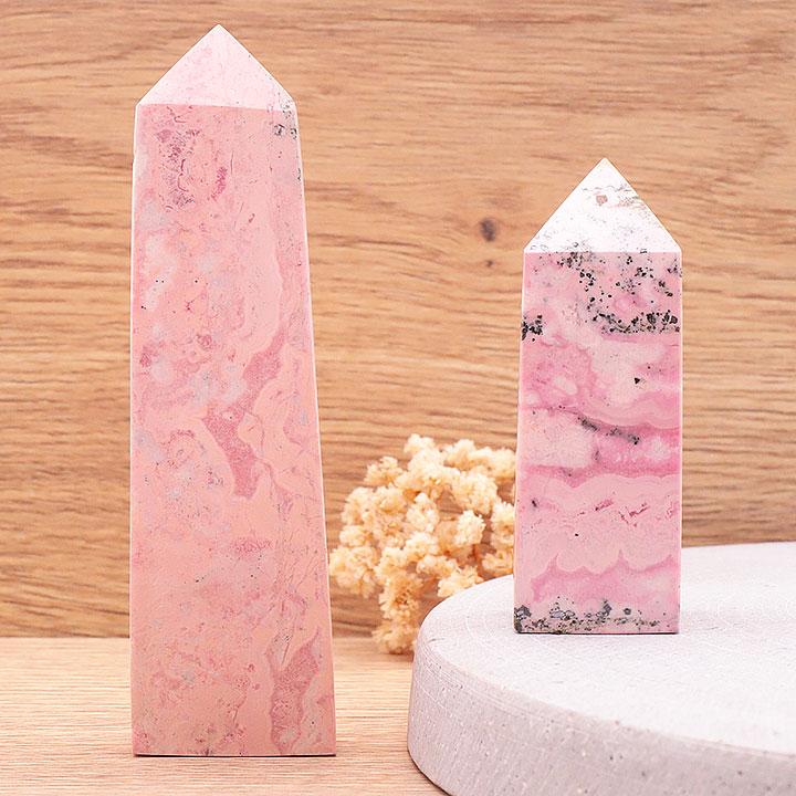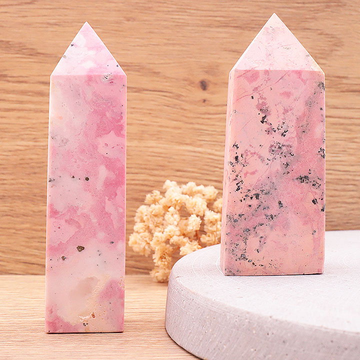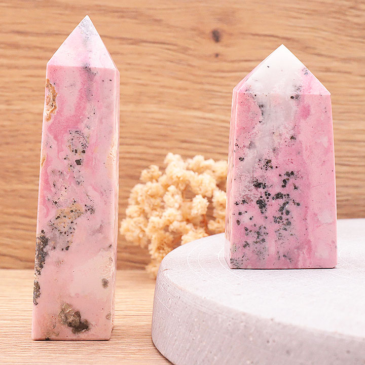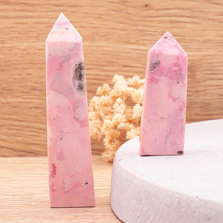 Pointe polie rhodonite Pérou AA+ 30 à 60g (lot 2 pièces)