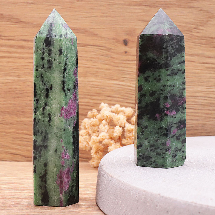 Pointe polie rubis zoïsite AA 70 à 100g (1 pièce)