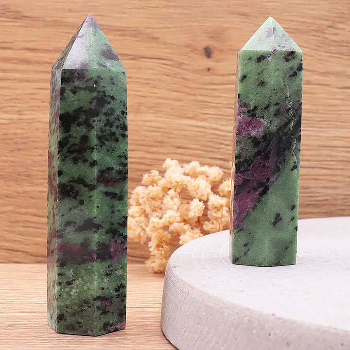 Pointe polie rubis zoïsite AA 100 à 130g (1 pièce)