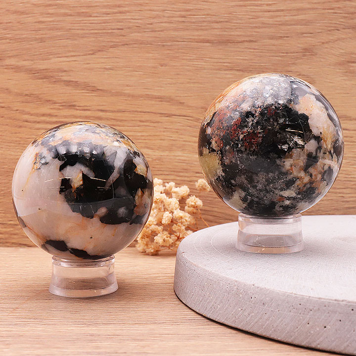 Sphère tourmaline noire sur quartz AA 60 à 70mm (1 pièce)