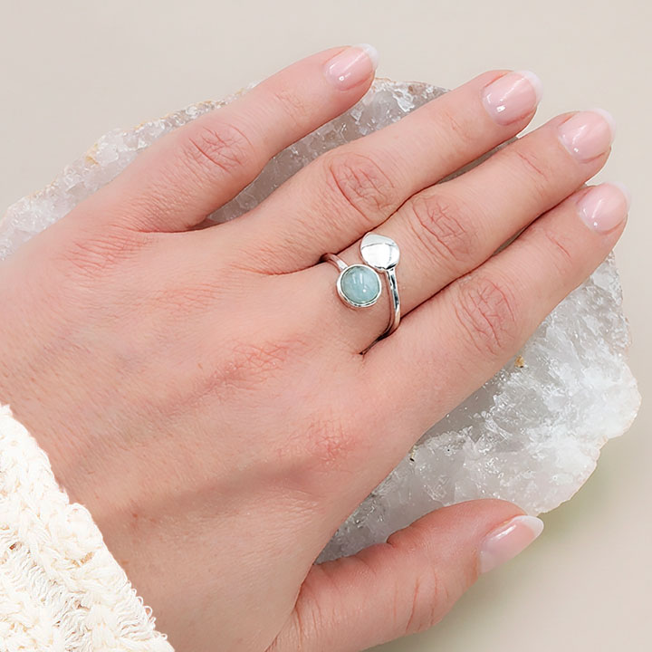 Taille de la bague : 50 à 58mm Hauteur de la bague (du point le plus bas au plus haut) : 02 à 12mm Taille de la pierre : 07mm Métal : Argent 925 **Bague Réglable ***L'argent est un métal souple et délicat, il faut donc manipuler la bague avec minutie.
