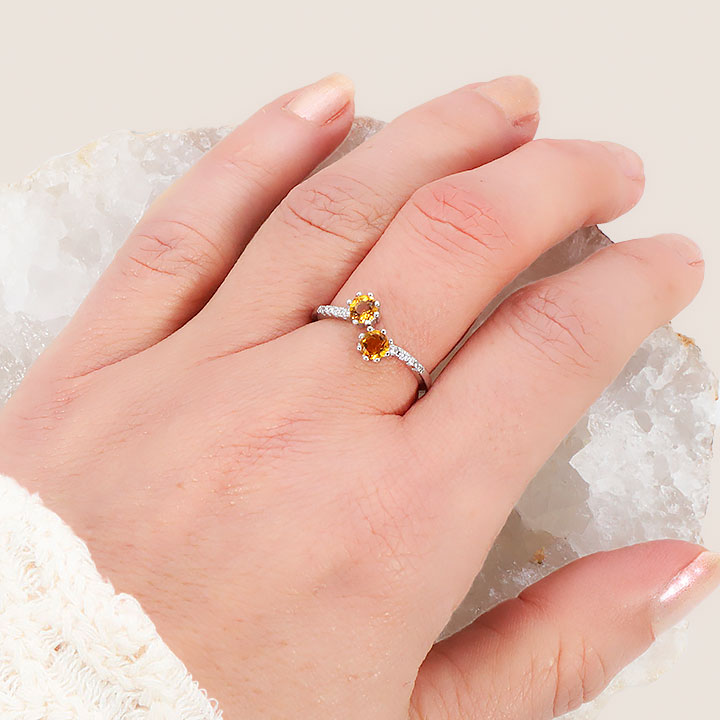 BAGUE ARGENT 925 RHODIÉ MODÈLE 12 CITRINE FACETTÉE AAA (1 PIÈCE) LOT N°1A0126