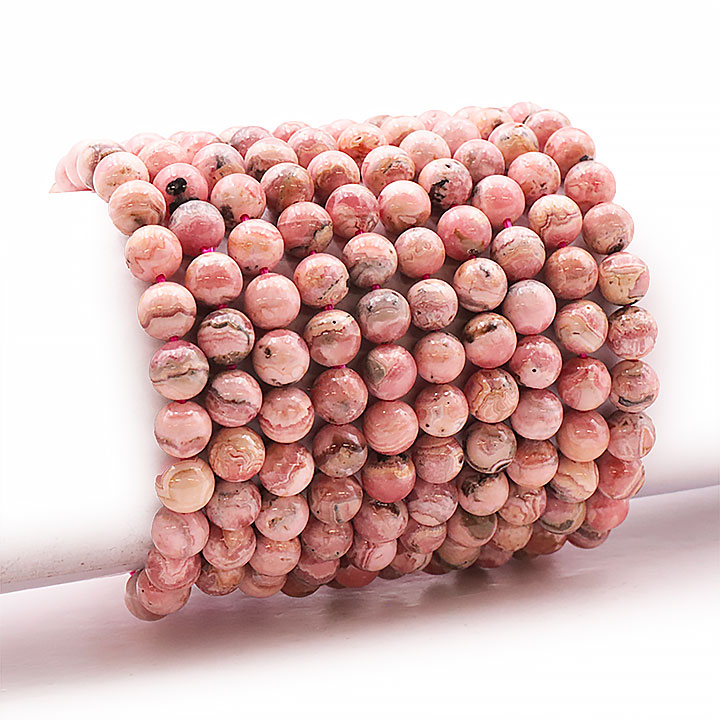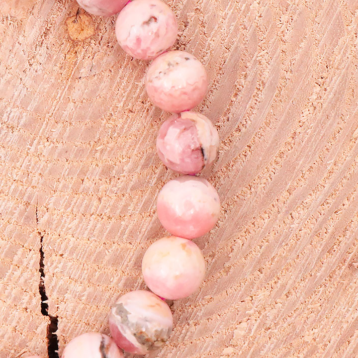 *La Rhodochrosite présente naturellement des cavités et irrégularités qu'il est possible de retrouver sur les perles.