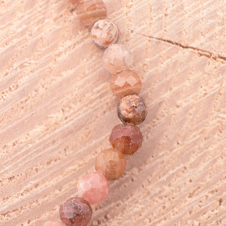 *La Rhodochrosite présente naturellement des cavités et irrégularités qu'il est possible de retrouver sur les perles.