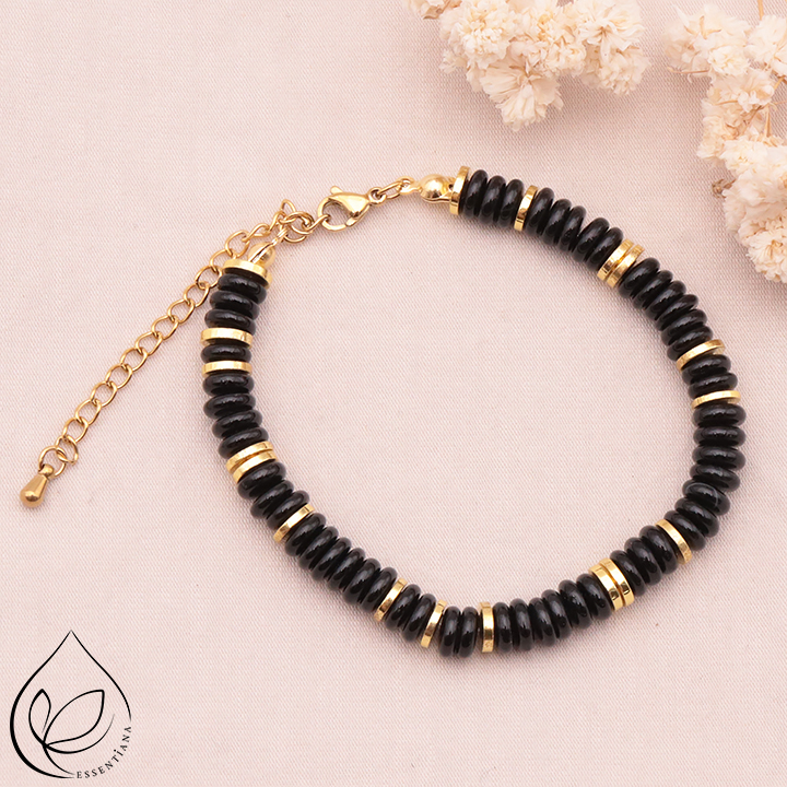 Taille du bracelet : 17 à 23cm Diamètre des perles : 06mm Métal : Acier Inoxydable. ✔ Inox 304 – Qualité professionnelle Nos bijoux sont réalisés en acier inoxydable 304, la référence mondiale pour les bijoux durables et hypoallergéniques. Cet alliage garantit éclat, résistance et confort au quotidien. *Afin de préserver vos bijoux, ne pas mettre en contact avec l’eau.