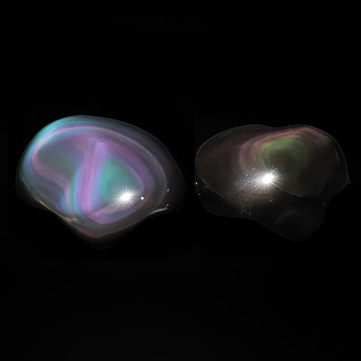 *Les galets ont été photographiés à l'aide d'une source de lumière articficielle afin de faire ressortir au mieux leurs reflets. **Pour des conditions de transport et afin d'éviter les chocs et les rayures, les pierres ont été huilées ; des résidus peuvent-être retrouvés sur les produits. Toutefois, il est possible de les retirer à l'aide d'un chiffon.
