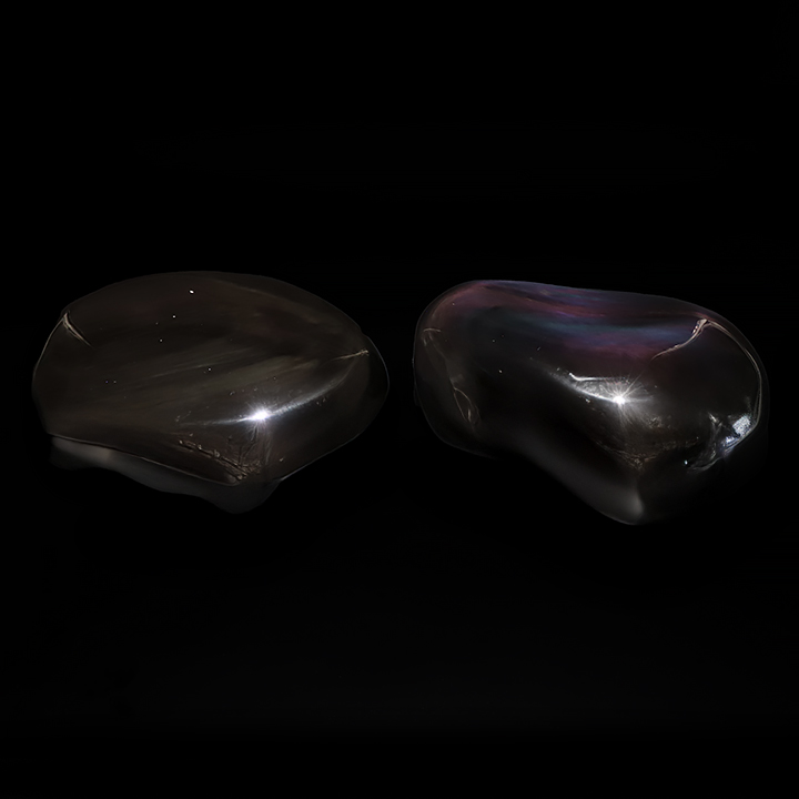 *Les galets ont été photographiés à l'aide d'une source de lumière articficielle afin de faire ressortir au mieux leurs reflets. **Pour des conditions de transport et afin d'éviter les chocs et les rayures, les pierres ont été huilées ; des résidus peuvent-être retrouvés sur les produits. Toutefois, il est possible de les retirer à l'aide d'un chiffon.