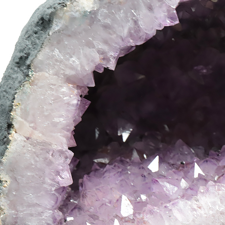 Type : Pièces Numérotées - Géode Améthyste Cathédrale Pierre(s) : Améthyste Couleur : Violet / Transparent Dimension (en mm) : 265*350 Poids : 18700g Qualité : A+ = Élevée Photo contractuelle
