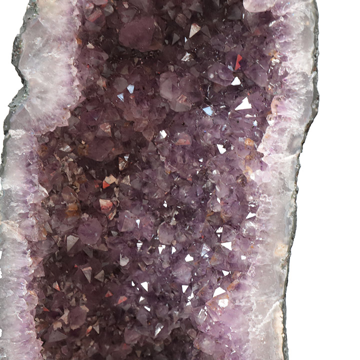 Type : Pièces Numérotées - Géode Améthyste Cathédrale Pierre(s) : Améthyste Couleur : Violet / Transparent Dimension (en mm) : 570*230 Poids : 32900g Qualité : AA = Très élevée Photo contractuelle