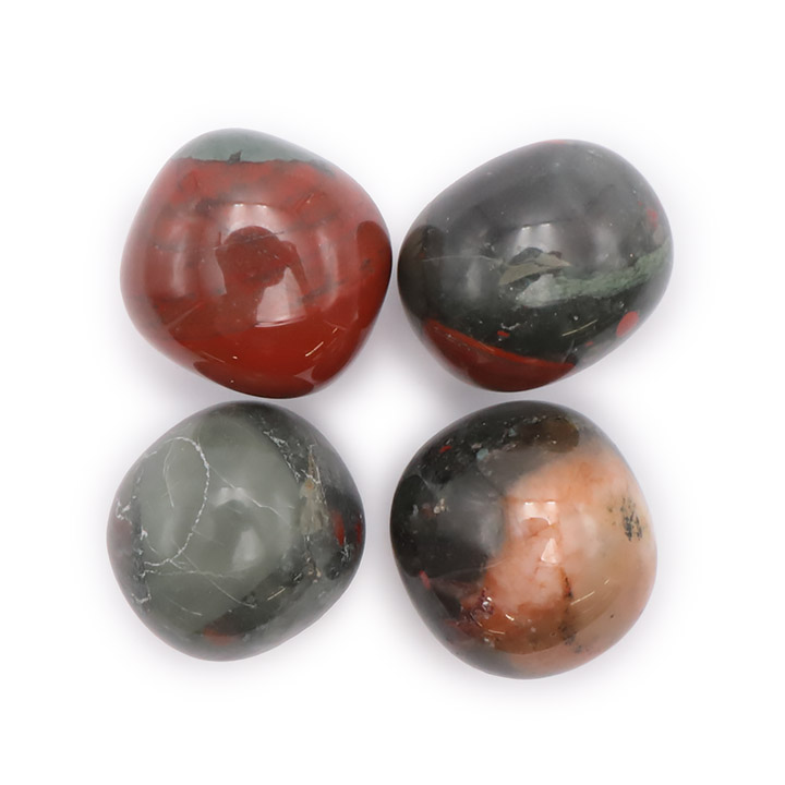 Type : Pierres Roulées Pierre(s) : Jaspe Héliotrope Dimension (en mm) : 30 – 40 Couleur : Vert / Rouge / Noir Qualité : A+ = Elevée Nombre de pierre dans le lot (environ) : 6 à 11 *La taille des pierres peut varier de 27 à 43mm