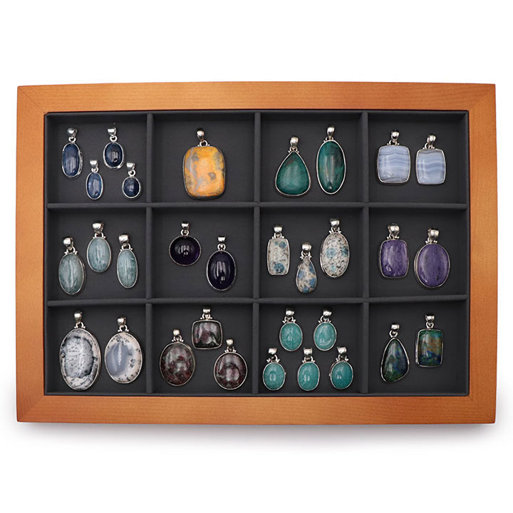 Ce présentoir peut contenir des pendentifs, bracelets, pierres roulées etc ...