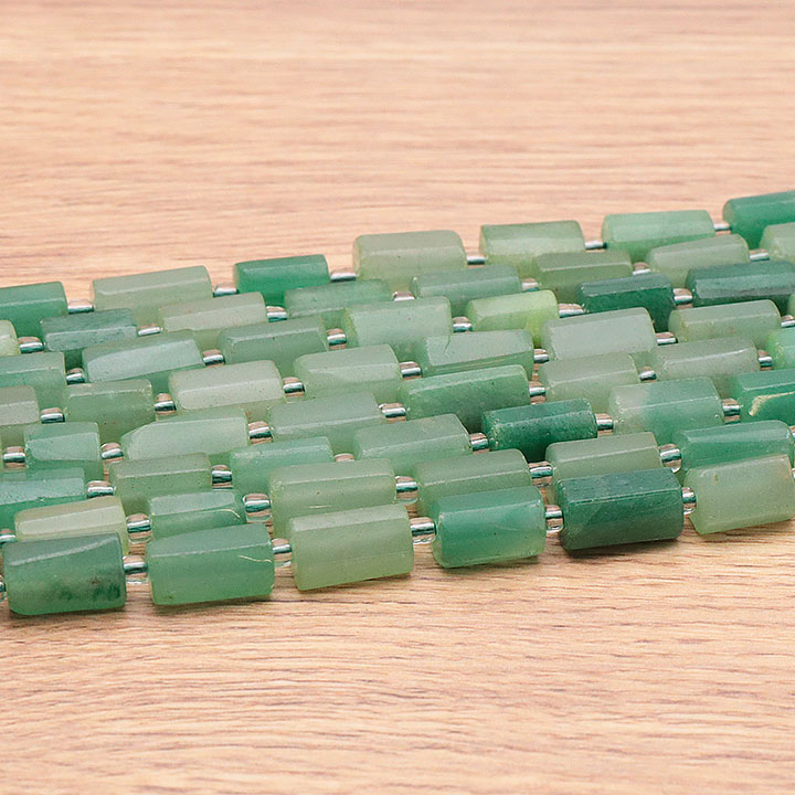 Fil de perles tubes 08 x 12mm aventurine verte AA