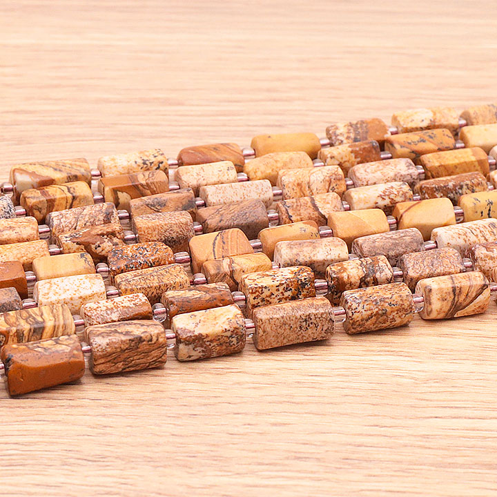 Fil de perles tubes 08 x 12mm jaspe paysage A
