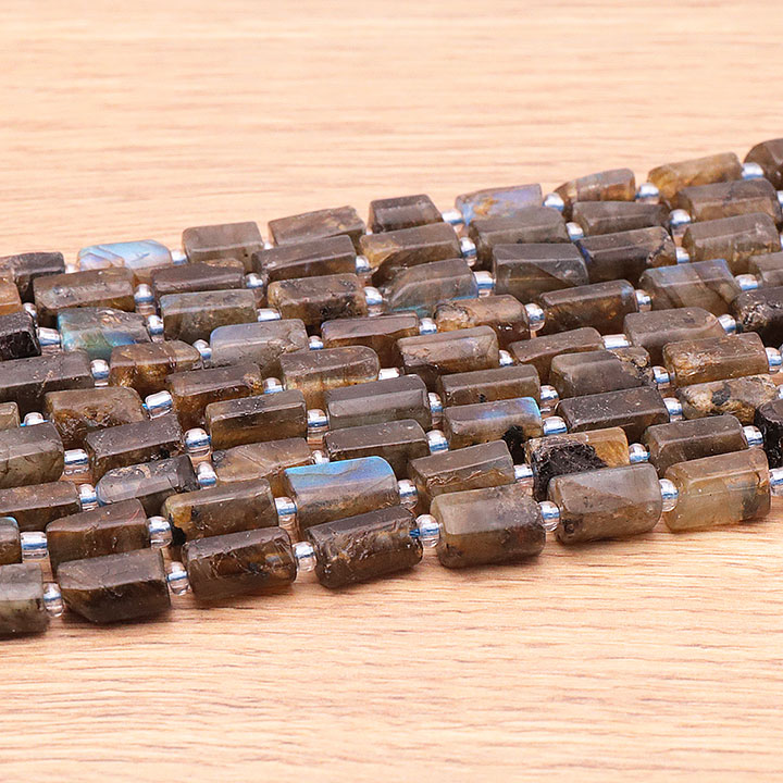Fil de perles pierres roulées 06 x 14mm labradorite AA