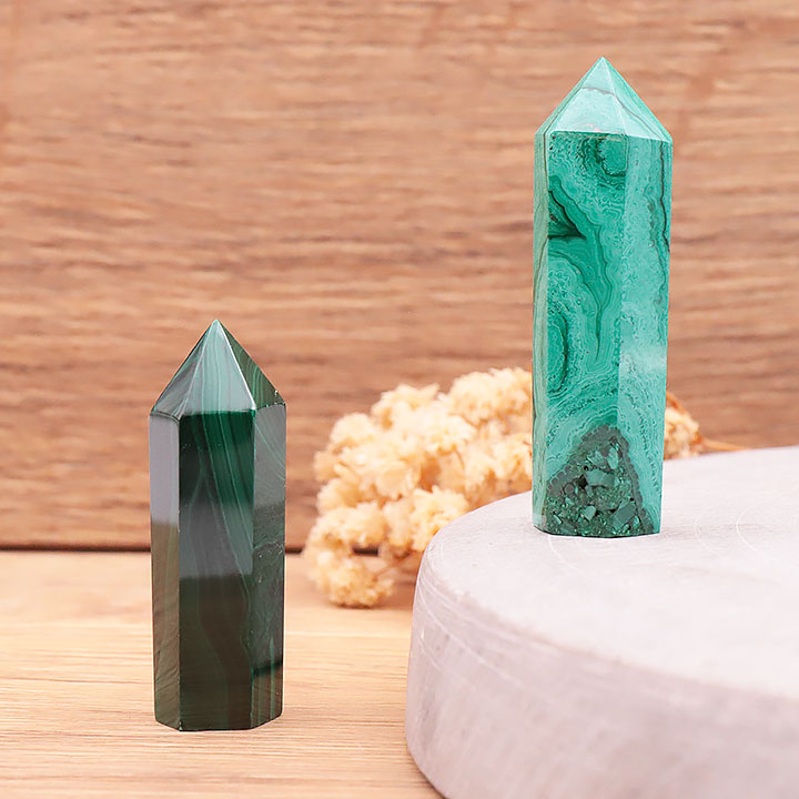 Pointe polie malachite AAA 10 à 20g (lot 2 pièces)